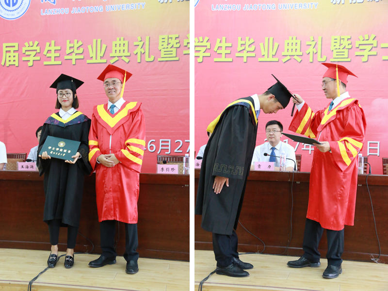 蘭交大教務(wù)處副處長(zhǎng)王海涌宣讀了關(guān)于授予學(xué)士學(xué)位的決定;學(xué)生處處長(zhǎng)貢力宣讀了關(guān)于表彰2016屆優(yōu)秀畢業(yè)生的決定;校黨委副書記、常務(wù)副校長(zhǎng)李引珍為2017屆畢業(yè)生代表正冠撥穗并頒發(fā)學(xué)位證書;各位領(lǐng)導(dǎo)為畢業(yè)生頒發(fā)了畢業(yè)證書和優(yōu)秀畢業(yè)生榮譽(yù)證書。