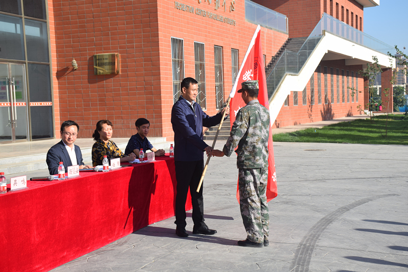 動員大會在莊嚴(yán)的國歌聲中開始,學(xué)院學(xué)工辦負(fù)責(zé)人劉菊萍就訓(xùn)練時間、訓(xùn)練紀(jì)律要求等方面做了具體的安排。軍訓(xùn)教官代表王雯和新生代表張林旺分別發(fā)言表態(tài)。湯旻安代表學(xué)院在會上作了軍訓(xùn)動員講話。他強(qiáng)調(diào),同學(xué)們要在軍訓(xùn)過程中要提高認(rèn)識、端正態(tài)度,真正把軍訓(xùn)作為大學(xué)生的一門必修課;刻苦訓(xùn)練、認(rèn)真學(xué)習(xí),在訓(xùn)練中樹立不怕苦、不怕累的精神,確保訓(xùn)練效果;嚴(yán)格要求、強(qiáng)化管理,確保軍訓(xùn)工作緊張、有序、安全;講文明樹新風(fēng)、除陋習(xí)展形象,樹立良好風(fēng)尚,展示新時代大學(xué)生的風(fēng)采;以人為本、科學(xué)施訓(xùn),確保軍訓(xùn)工作取得實(shí)效。最后,由湯旻安向軍訓(xùn)教官授旗,標(biāo)志著2017級新生軍訓(xùn)正式拉開帷幕。