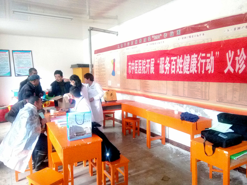 走訪調(diào)研活動(dòng)結(jié)束后,醫(yī)務(wù)人員在村會(huì)議室開展送醫(yī)送藥義診活動(dòng)。村民們踴躍前來(lái)診病,都說(shuō)城里的大夫好,不但免費(fèi)為我們開方,而且還免費(fèi)送藥。