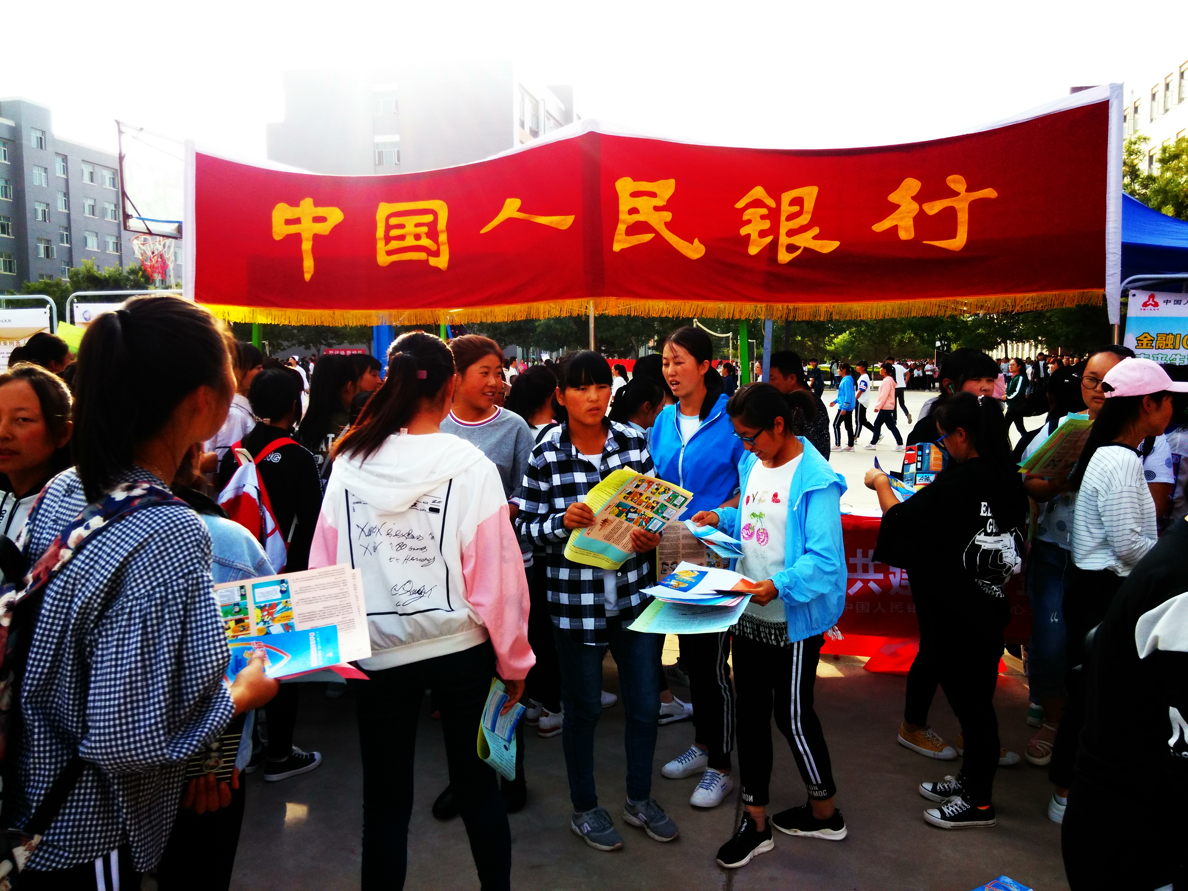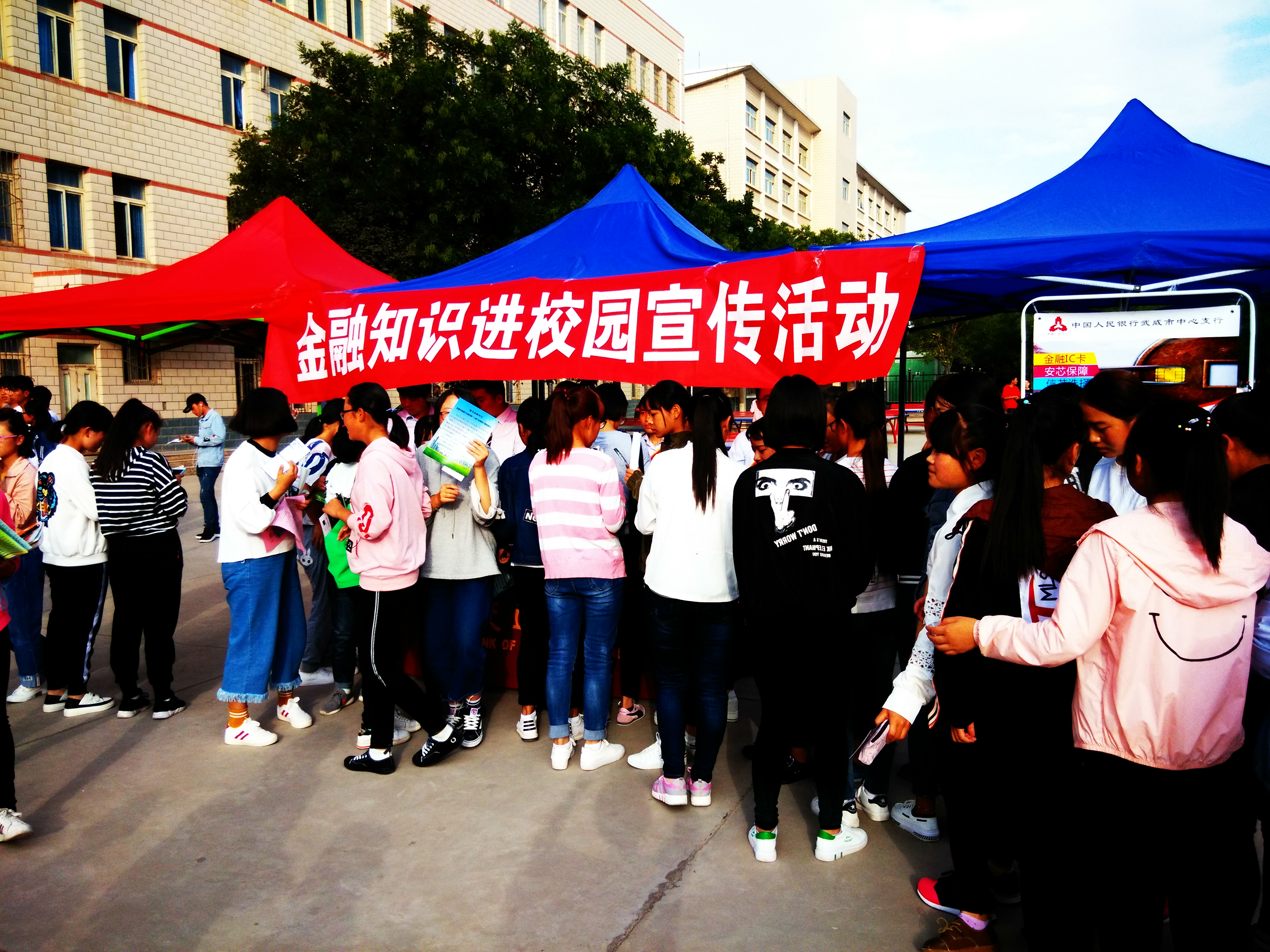 ???? 為幫助和引導(dǎo)大學(xué)生群體牢固樹(shù)立金融安全意識(shí),9月21日下午,學(xué)生工作處邀請(qǐng)中國(guó)人民銀行武威分行、武威農(nóng)商銀行、交通銀行武威分行在學(xué)院尚德樓南操場(chǎng)開(kāi)展了“送金融知識(shí)進(jìn)校園”宣傳活動(dòng),全院學(xué)生積極響應(yīng)號(hào)召,有1000余人參加了此次活動(dòng)。