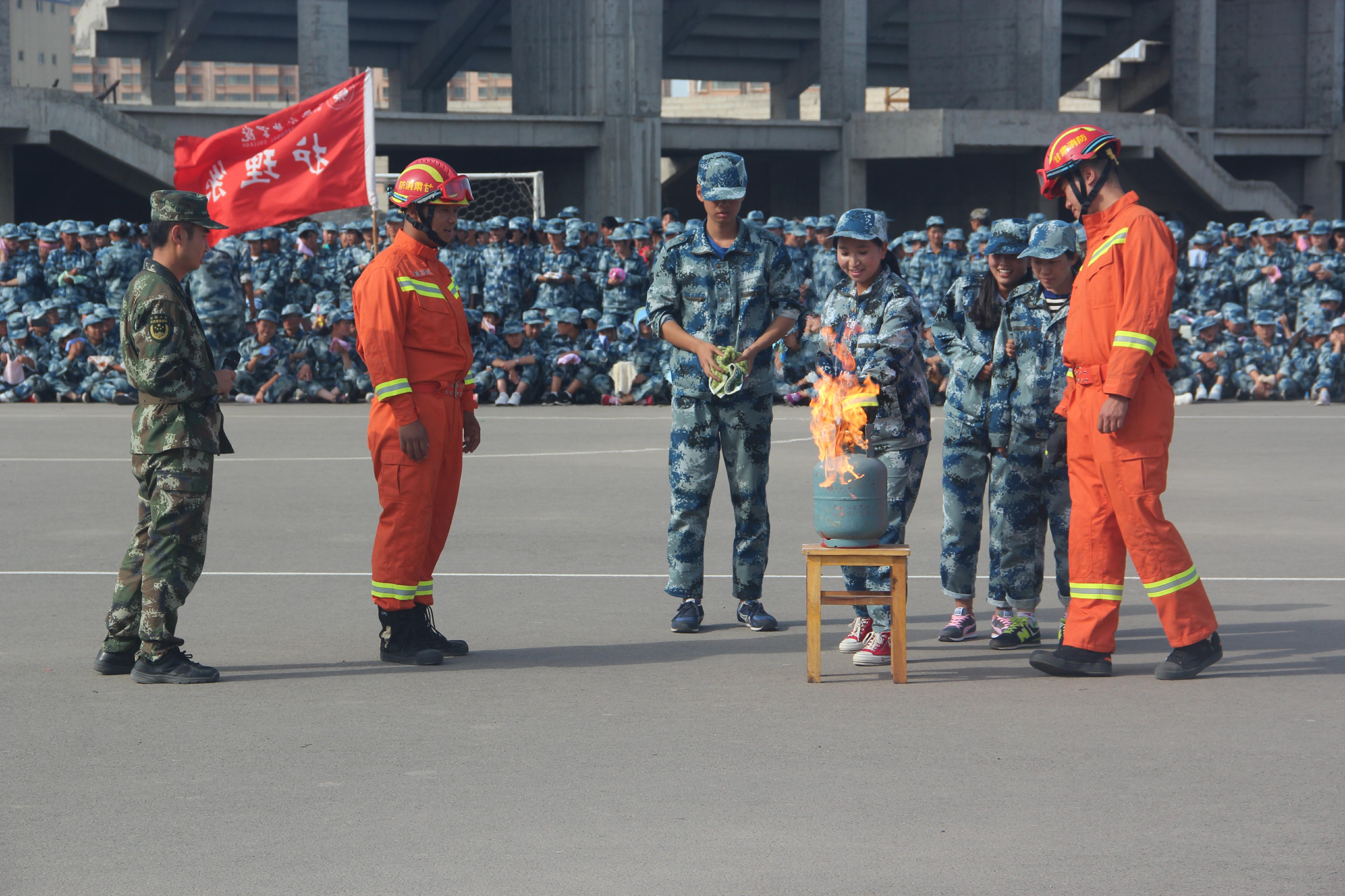 隨后,所有參演學生整隊到操場參加了滅火演練。在消防官兵的講解和和示范下,同學們體驗了處置著火液化氣瓶、干粉滅火器滅火,通過模型煙室等操作?! ?/p>