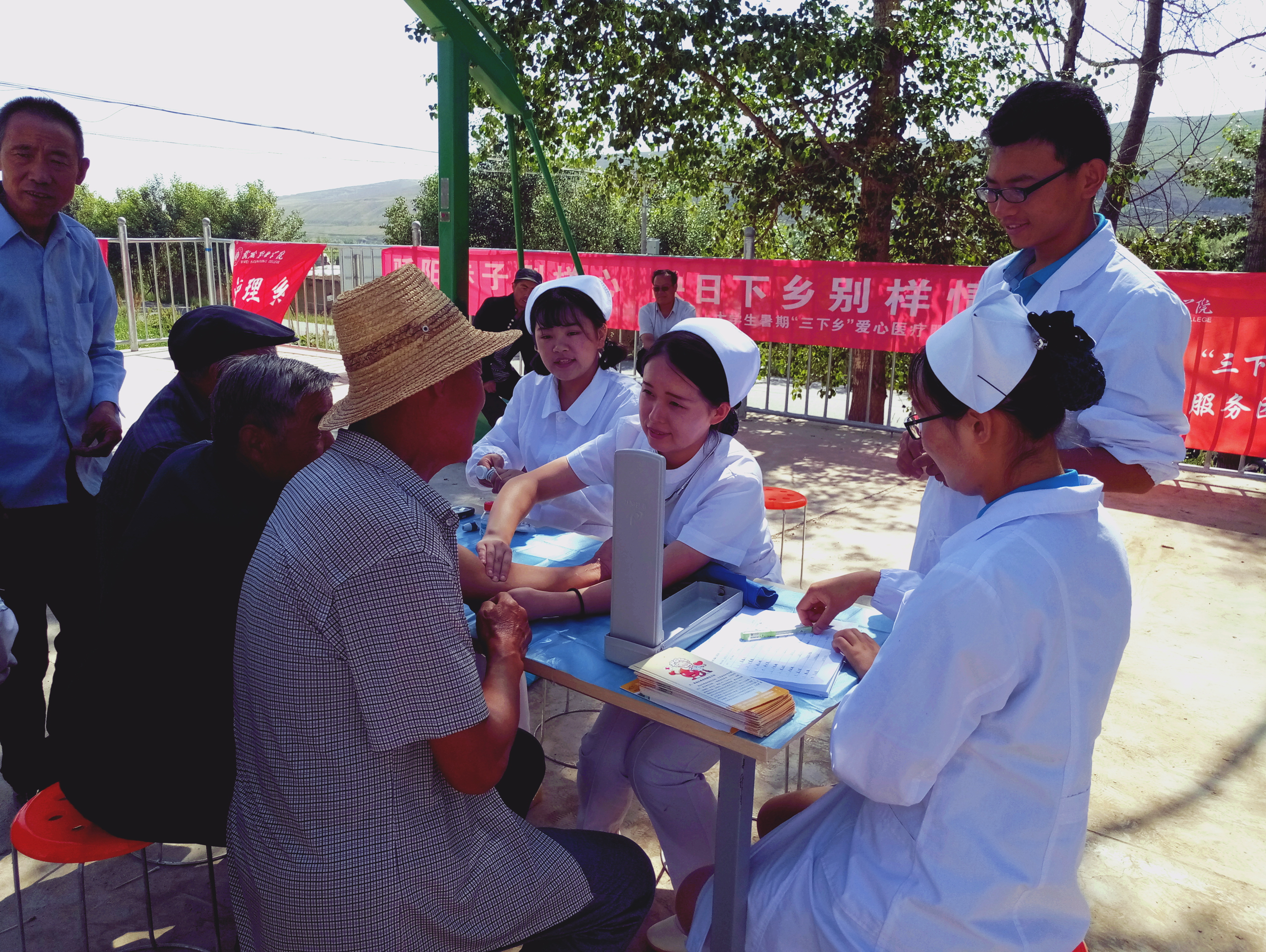 (護(hù)理系師生在張義鄉(xiāng)開(kāi)展“三下鄉(xiāng)”活動(dòng))