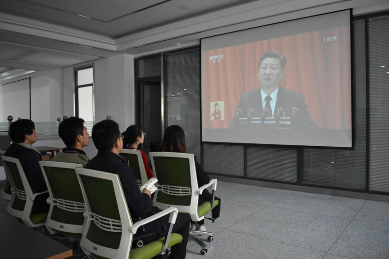 10月18日上午9時(shí),雙創(chuàng)中心負(fù)責(zé)人胡建宏在行樹樓210會議室與學(xué)院部門負(fù)責(zé)人集中觀看了黨的十九大開幕會盛況,其他兩位教師孟建文、司玲帶領(lǐng)學(xué)生在雙創(chuàng)中心辦公室收看開幕會盛況和習(xí)近平總書記的報(bào)告,認(rèn)真學(xué)習(xí)領(lǐng)會十九大精神。