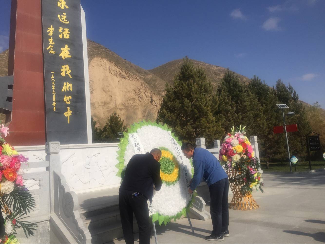 全體黨員首先列隊來到西路軍烈士陵園舉行憑吊儀式,王永緒、潘從民向西路軍烈士紀念碑敬獻花圈,全體黨員向紀念碑鞠躬致敬,瞻仰紅九軍烈士墓,表達對西路軍革命烈士的深深敬意和深切緬懷。