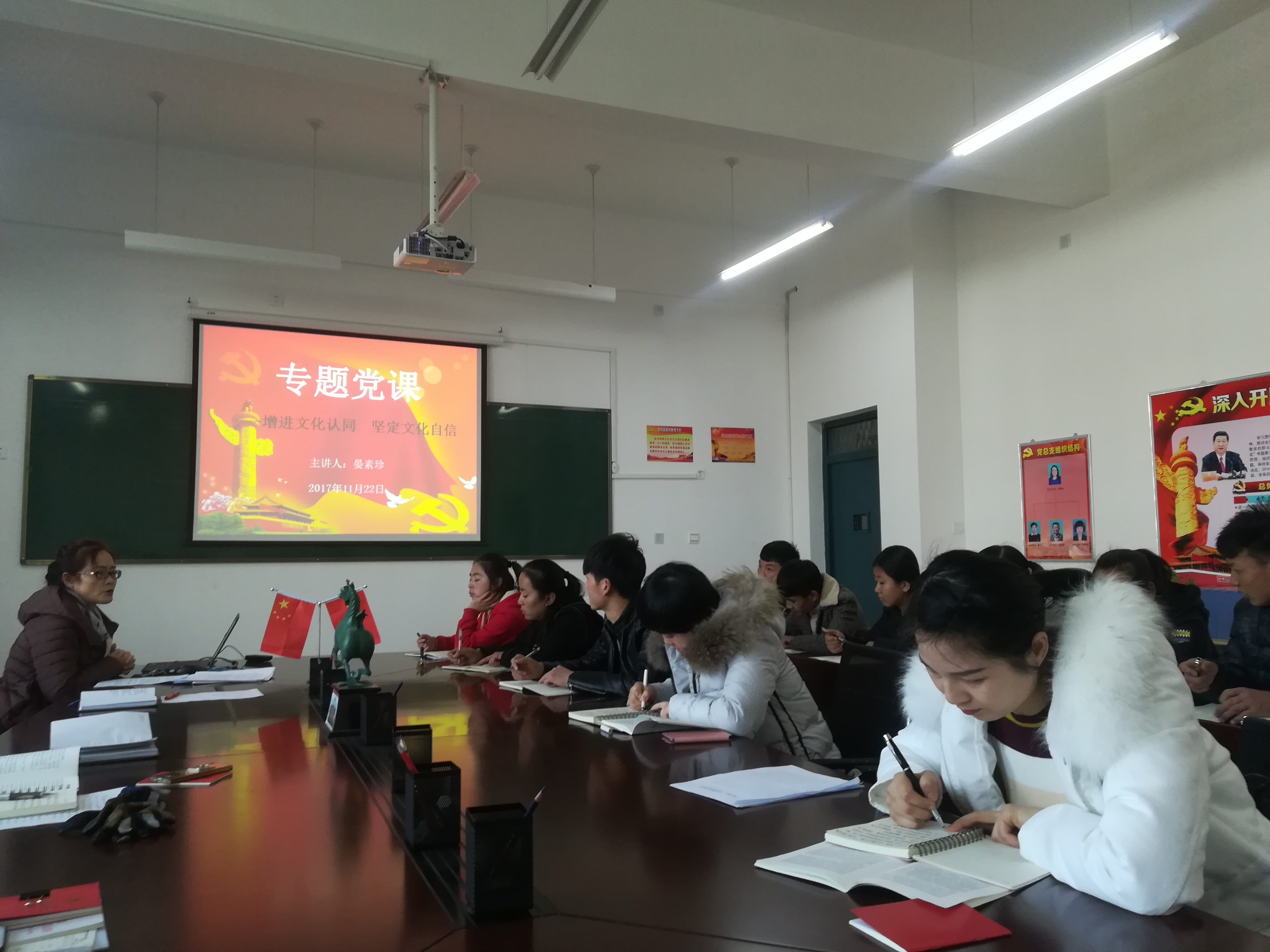 此次黨課后,全體黨員紛紛表示,文化是民族的血脈,是人民的精神家園。把握好文化認(rèn)同與文化自信的內(nèi)在關(guān)系,不斷增進(jìn)文化認(rèn)同、堅(jiān)定文化自信,對(duì)于我們深刻領(lǐng)會(huì)黨中央治國理政新理念新思想新戰(zhàn)略,不斷提升對(duì)“四個(gè)自信”的理解認(rèn)識(shí),全面建設(shè)社會(huì)主義文化強(qiáng)國,具有十分重要的意義。(供稿:現(xiàn)代農(nóng)業(yè)技術(shù)系? 審核:晏素珍? 撰稿:蔡海 圖片:蔡海)