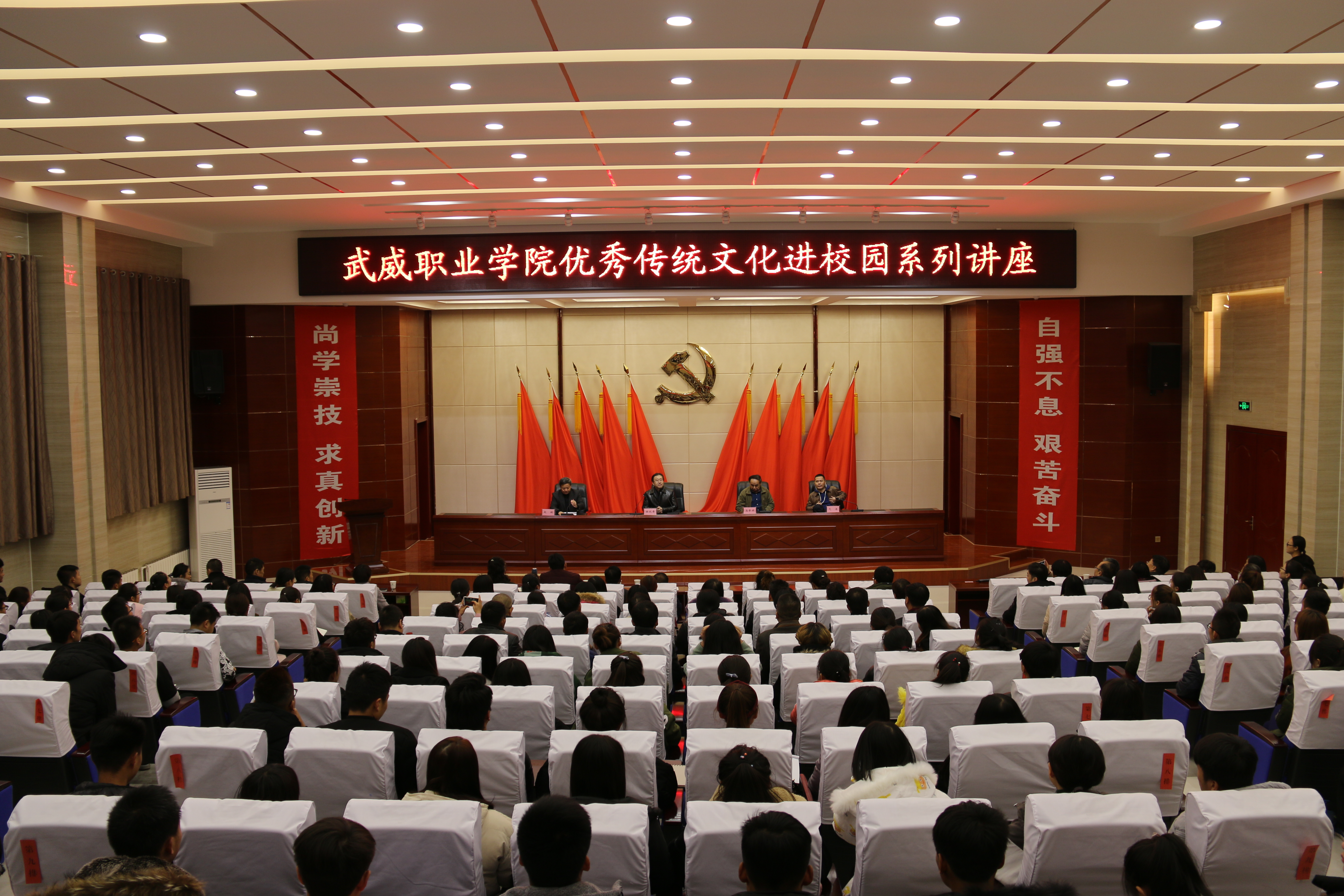 為貫徹落實(shí)《甘肅省實(shí)施中華優(yōu)秀傳統(tǒng)文化傳承發(fā)展工作方案》,推進(jìn)優(yōu)質(zhì)高等職業(yè)院校的建設(shè),加強(qiáng)傳統(tǒng)文化和校園文化相融合,提升校園文化軟實(shí)力,11月22日,學(xué)院在大學(xué)生活動(dòng)中心菁英廳舉辦優(yōu)秀傳統(tǒng)文化進(jìn)校園活動(dòng)?;顒?dòng)邀請了西部著名作家、西北師范大學(xué)傳媒學(xué)院院長徐兆壽,甘肅省作家協(xié)會主席、甘肅省社科院文化研究所所長馬步升和甘肅省作協(xié)副秘書長、70后新銳作家弋舟三位學(xué)者以“鳩摩羅什與涼州文化”為主題進(jìn)行了系列講座。學(xué)院黨委副書記趙明主持活動(dòng),學(xué)院師生共260余人聆聽了講座。